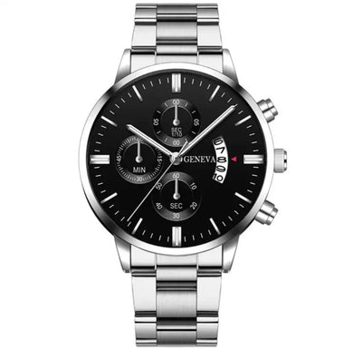 Reloj geneva elegant negro-plateado